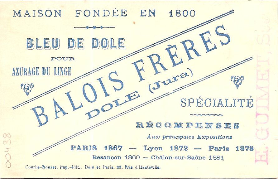 Les usines Guimet ayant débuté dans l'est de la France, la majeure partie des documents vient de ces régions (Rhône-Alpes, Jura et Bourgogne).